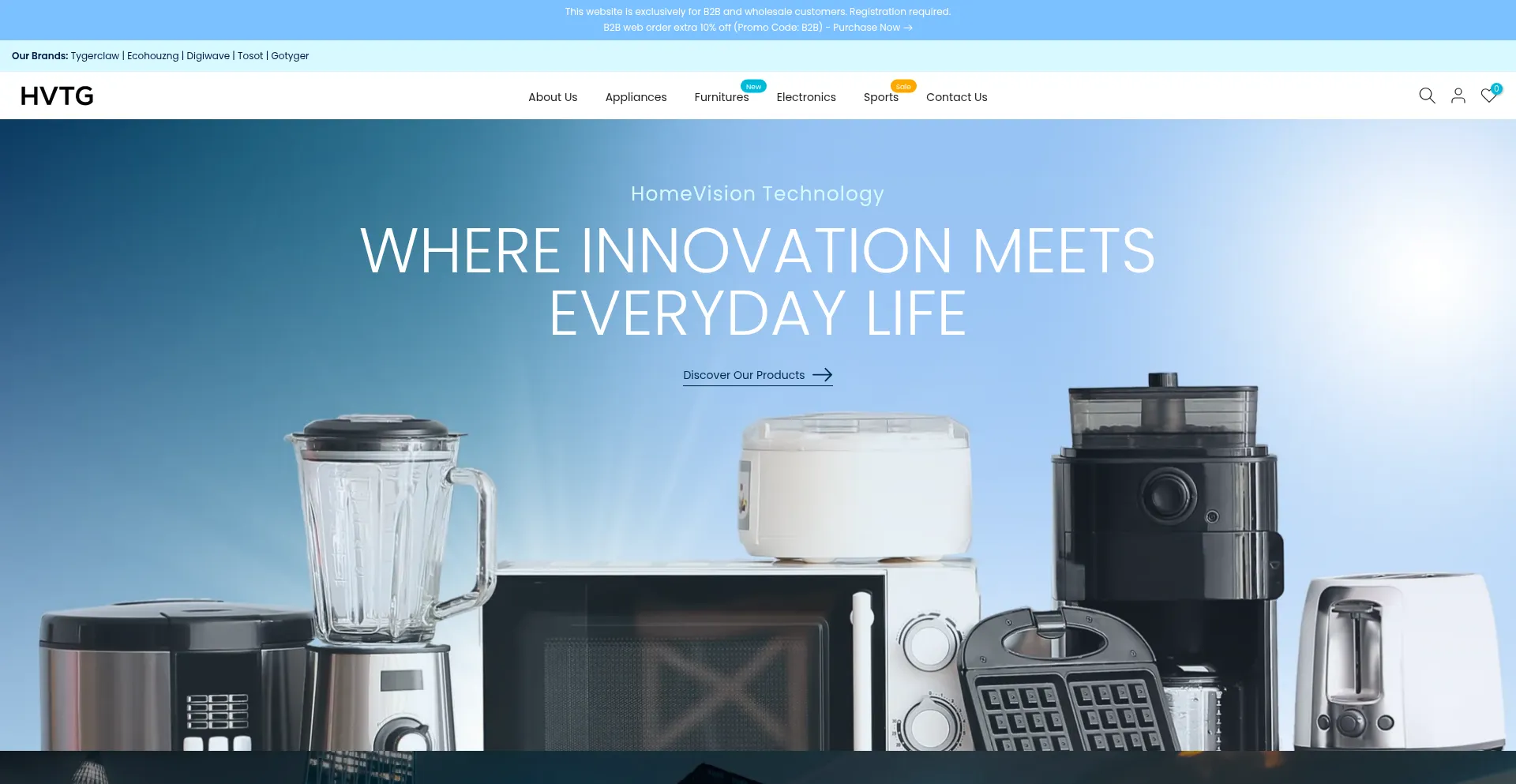 Explore HVTG’s B2B platform for wholesale access to brands: TygerClaw, Ecohouzng, Tosot, and Digiwave. Fast shipping, extended warranties, and top-tier support