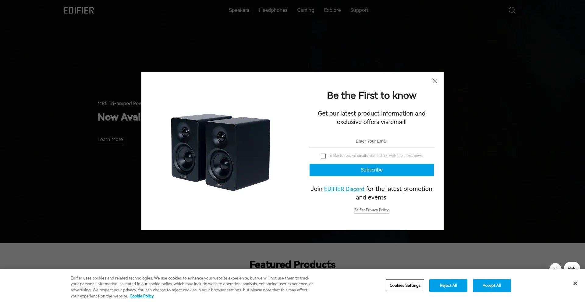 O site implementa mecanismos de consentimento de cookies em conformidade com regulamentações de privacidade como GDPR ou CCPA. Isso demonstra que edifier.com adere a padrões de proteção de dados e fornece aos usuários controle sobre práticas de coleta de dados pessoais.