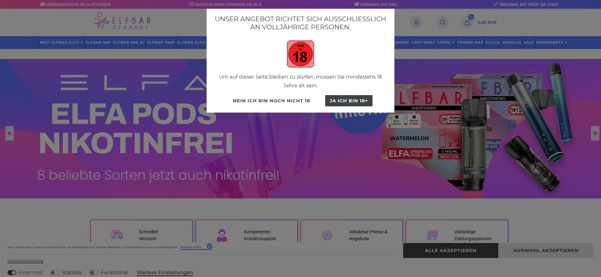 Dein Online-Shop für ELFBAR, ELFA, LOST MARY und mehr ✓ Schnelle Lieferung ✓ Günstige Preise ✓ PayPal & Klarna nutzen - jetzt shoppen ✓