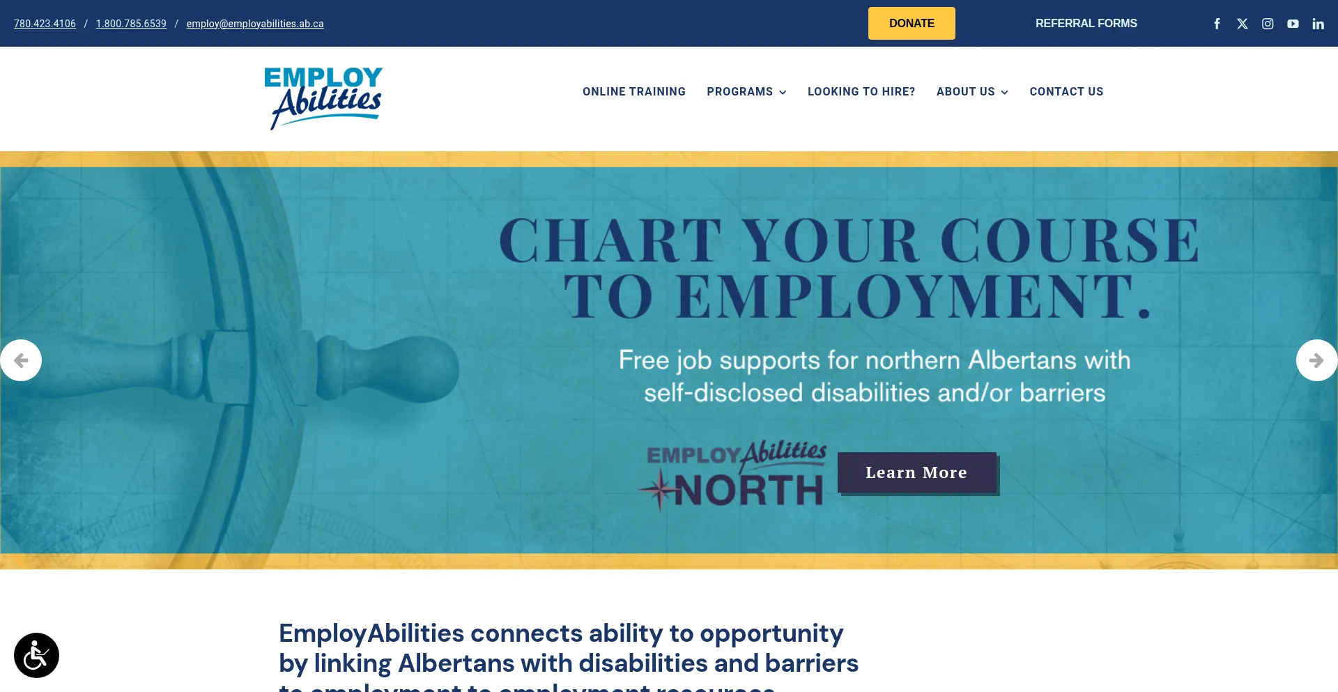 EmployAbilities connects ability to opportunity by linking Albertans with disabilities and barriers to employment resources.