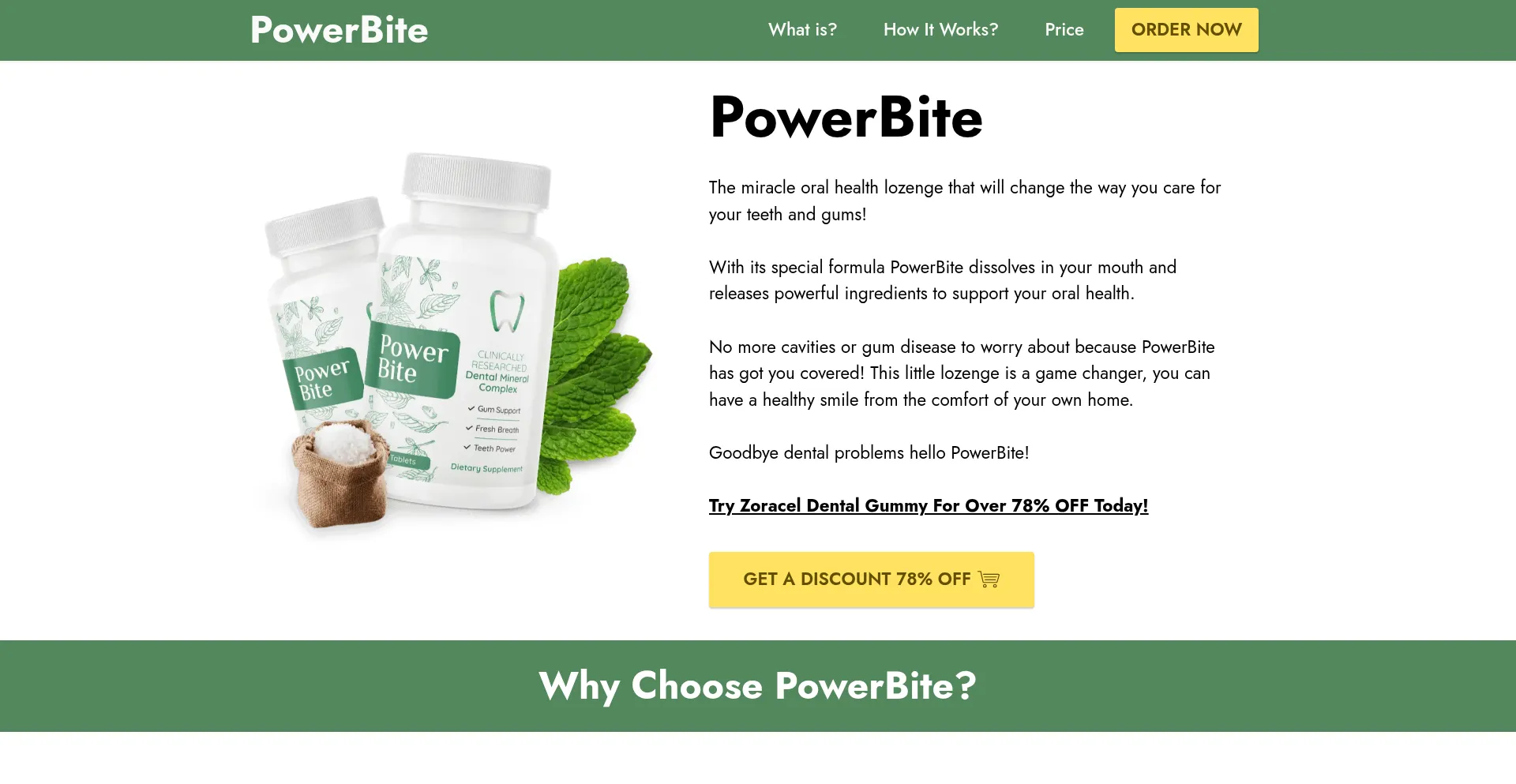 The miracle oral health lozenge that will change the way you care for your teeth and gums!With its special formula PowerBite dissolves in your mouth and releases powerful ingred...