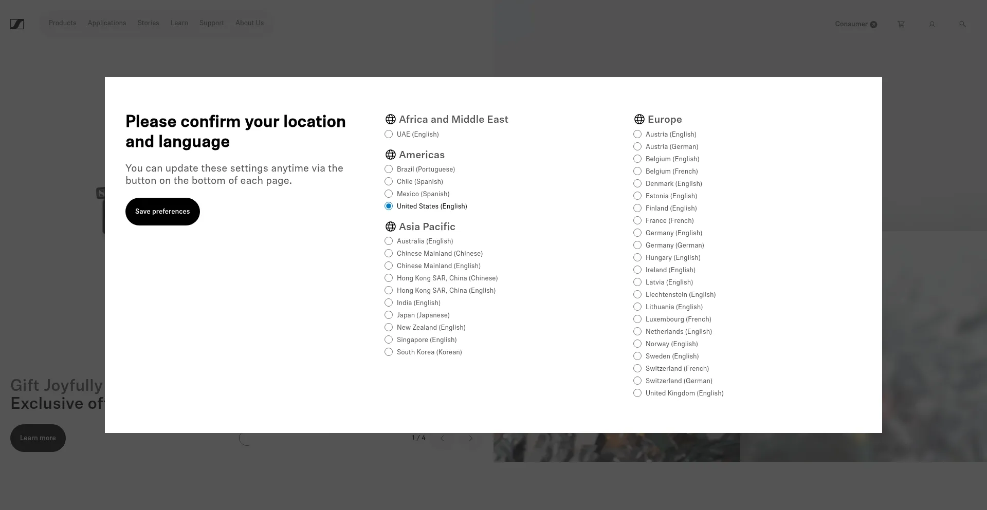 O site implementa mecanismos de consentimento de cookies em conformidade com regulamentações de privacidade como GDPR ou CCPA. Isso demonstra que en-us.sennheiser.com adere a padrões de proteção de dados e fornece aos usuários controle sobre práticas de coleta de dados pessoais.