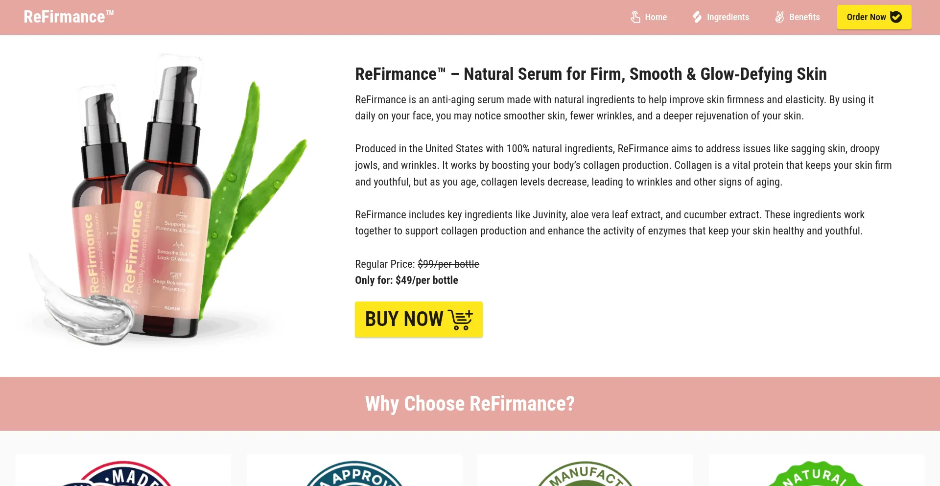 Smooth fine lines, boost firmness and fade dark spots naturally with ReFirmance™ serum. Made in a U.S. FDA‑registered, GMP‑certified facility. 60‑day guarantee.