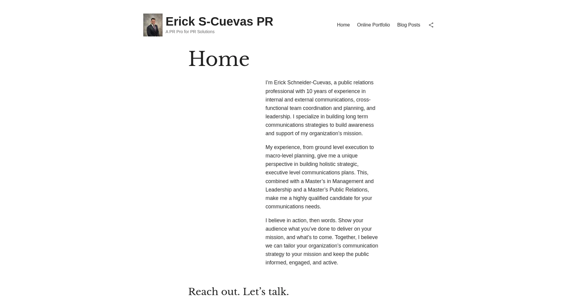 I’m Erick Schneider-Cuevas, a public relations professional with 10 years of experience in internal and external communications, cross-functional team coordination and plannin...