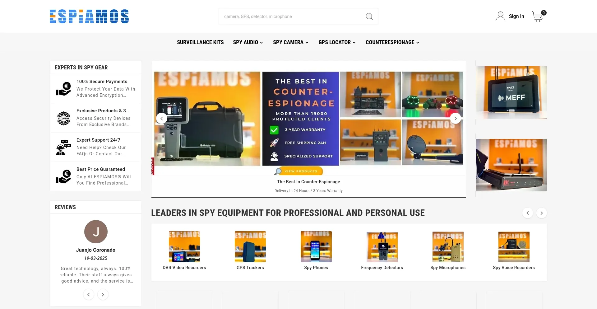 Buy your spy camera, GPS tracker or voice recorder at ESPIAMOS®. Advanced spy tech with 3-year warranty and expert advice.