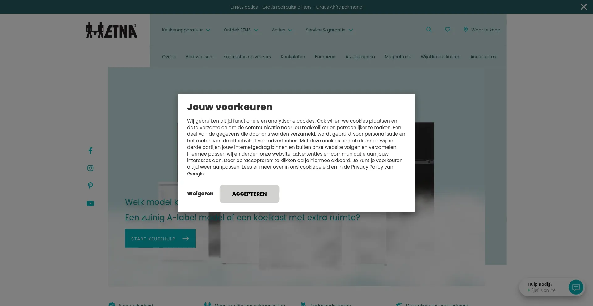O site implementa mecanismos de consentimento de cookies em conformidade com regulamentações de privacidade como GDPR ou CCPA. Isso demonstra que etna.nl adere a padrões de proteção de dados e fornece aos usuários controle sobre práticas de coleta de dados pessoais.