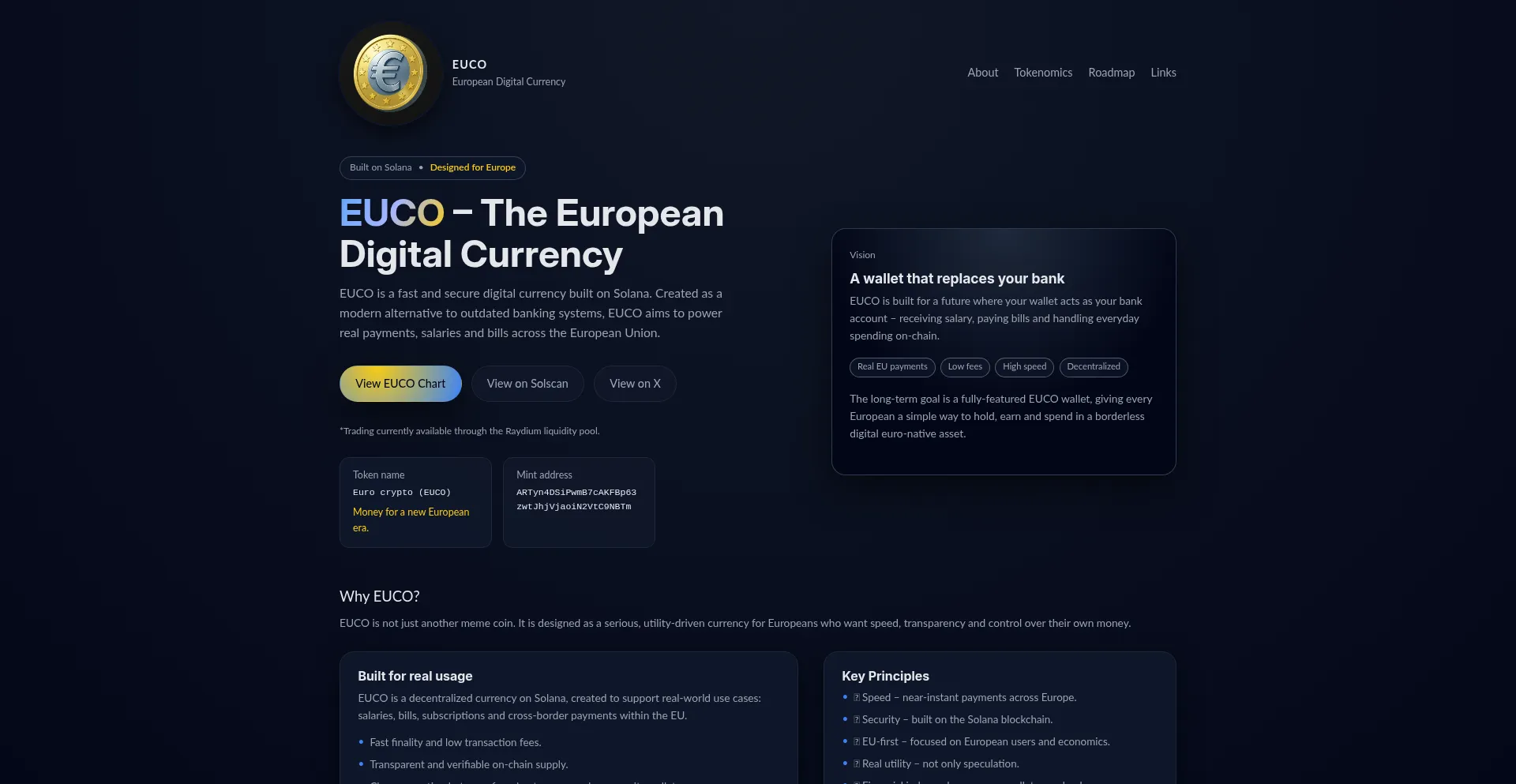 EUCO is Europe’s financial uprising — a Solana-powered digital currency built for real payments, fast transfers and a future where your wallet replaces your bank
