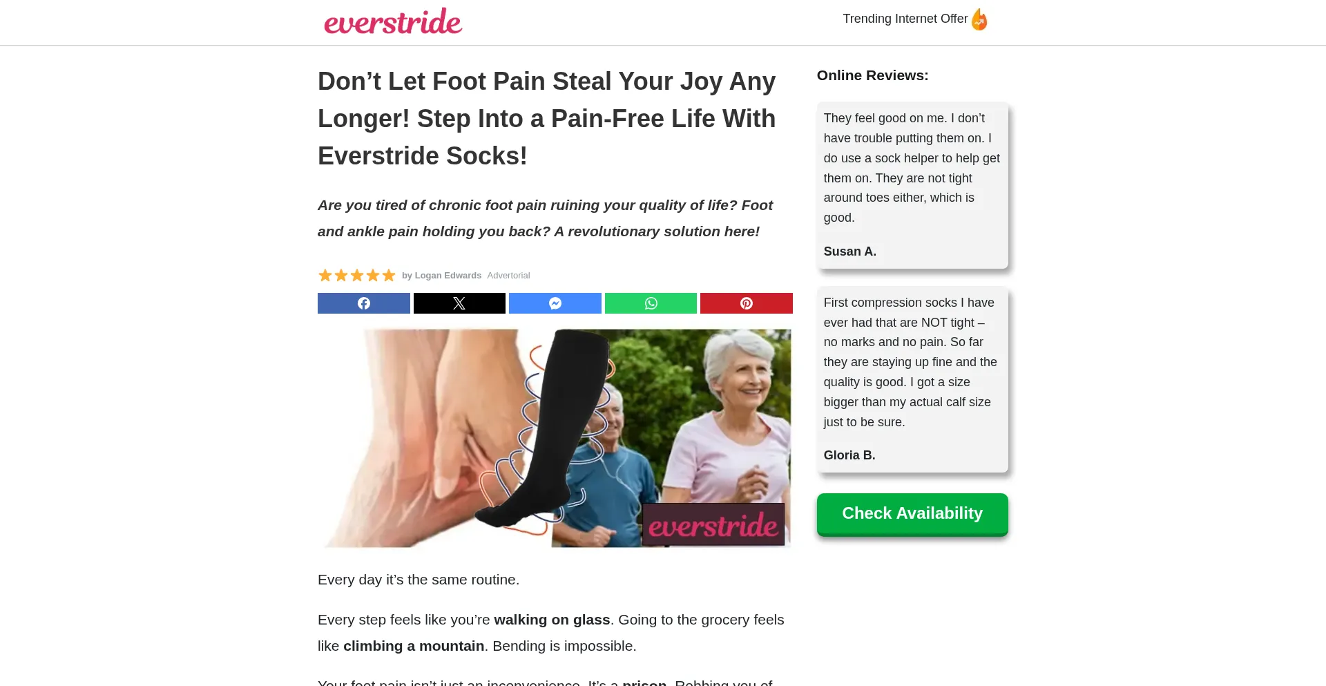 Você teve uma experiência pessoal com Everstridecompressionsocks.com?