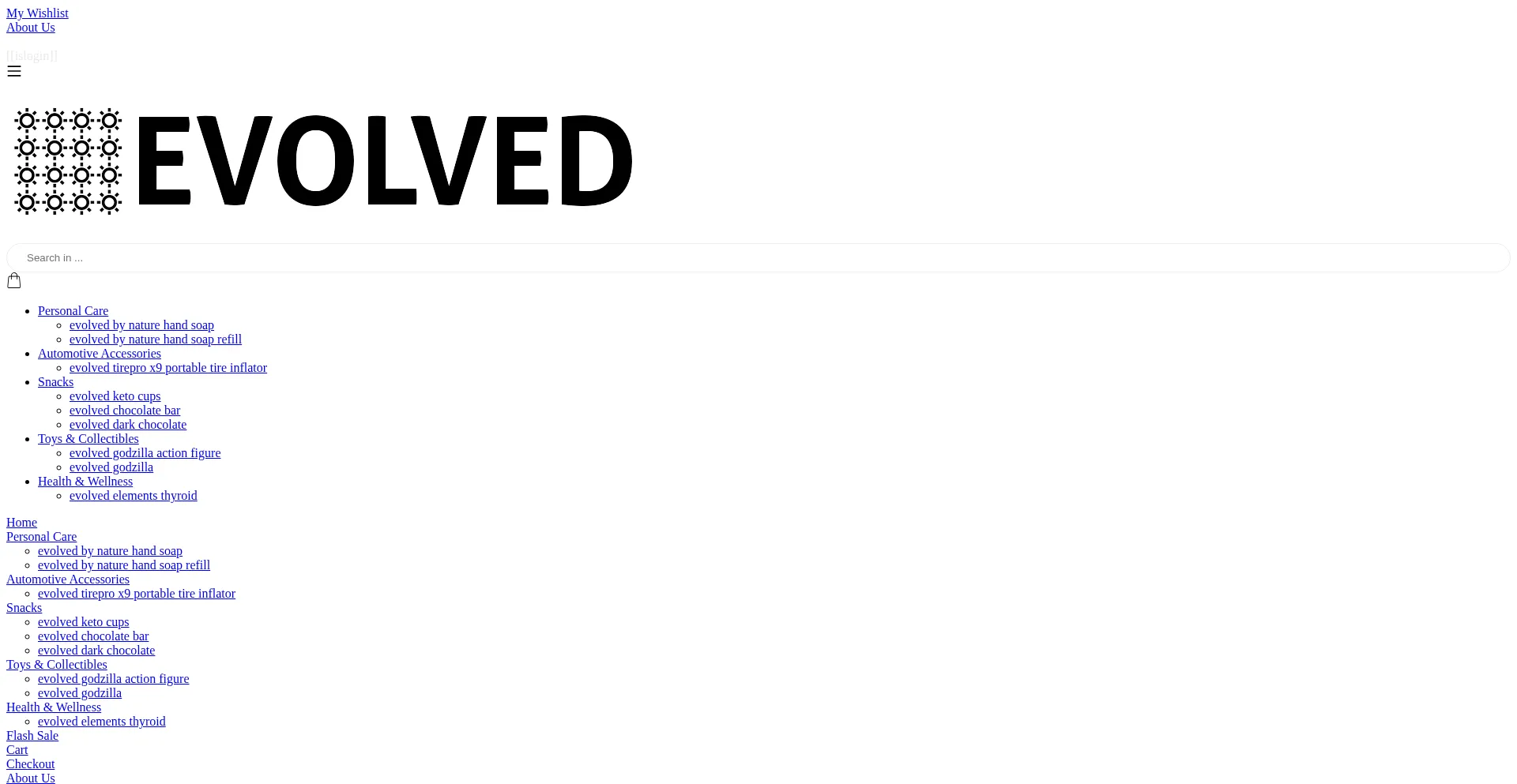 Discover Evolved by Nature hand soap, refills, TirePro X9, Keto Cups, chocolate bars, and more. Enjoy exclusive discounts, free shipping, and unbeatable prices.