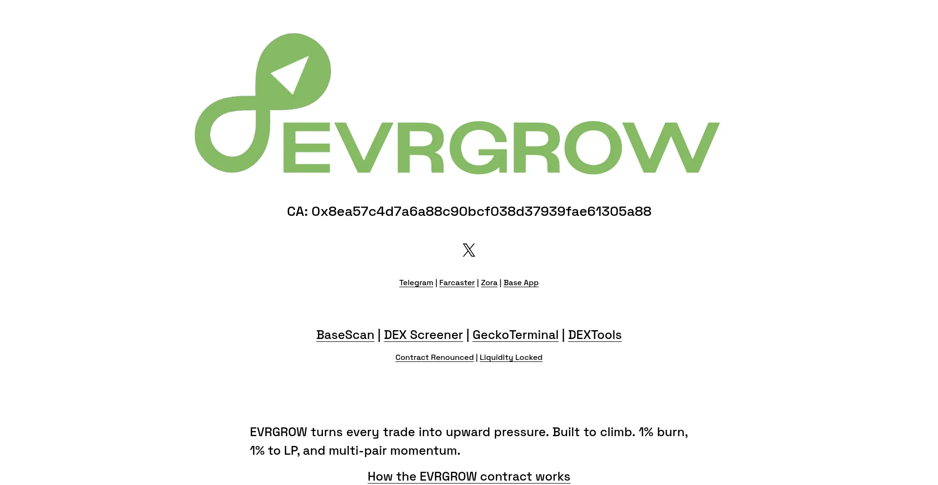 EVRGROW only knows one direction - up. Every trade tightens the supply with a 1% burn, while another 1% is locked into ETH liquidity, compounding its strength forever. Linked ...
