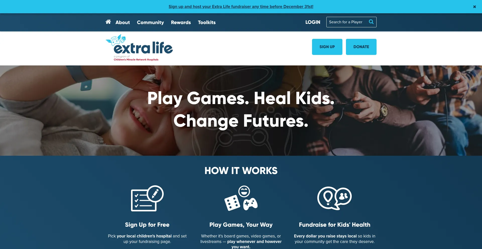 Game on with Extra Life, a fundraising program of Children's Miracle Network Hospitals. Rally with our community of gamers to play games and raise funds that Change Kids' Health...