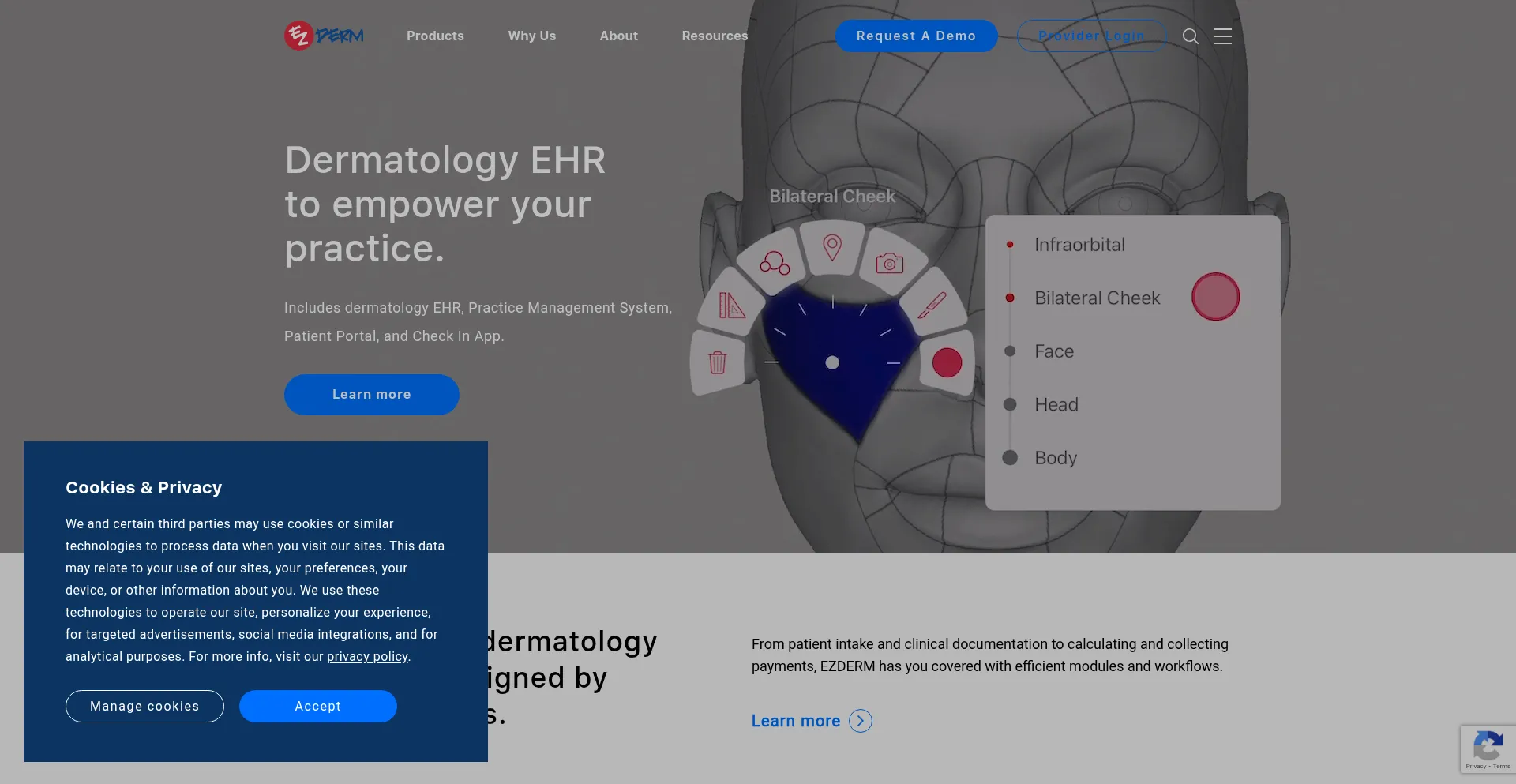 O site implementa mecanismos de consentimento de cookies em conformidade com regulamentações de privacidade como GDPR ou CCPA. Isso demonstra que ezderm.com adere a padrões de proteção de dados e fornece aos usuários controle sobre práticas de coleta de dados pessoais.