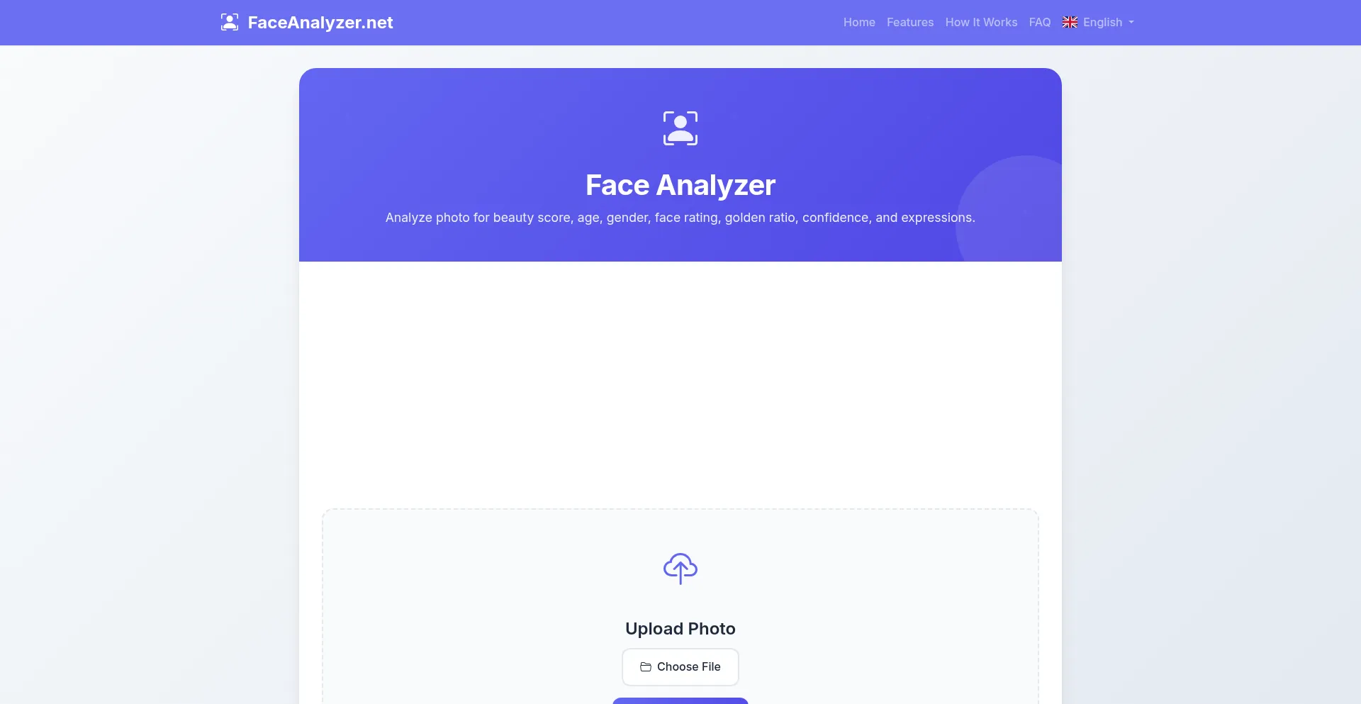 Analyze your face for beauty score, face rating, golden ratio, and facial symmetry with AI Face Analyzer.