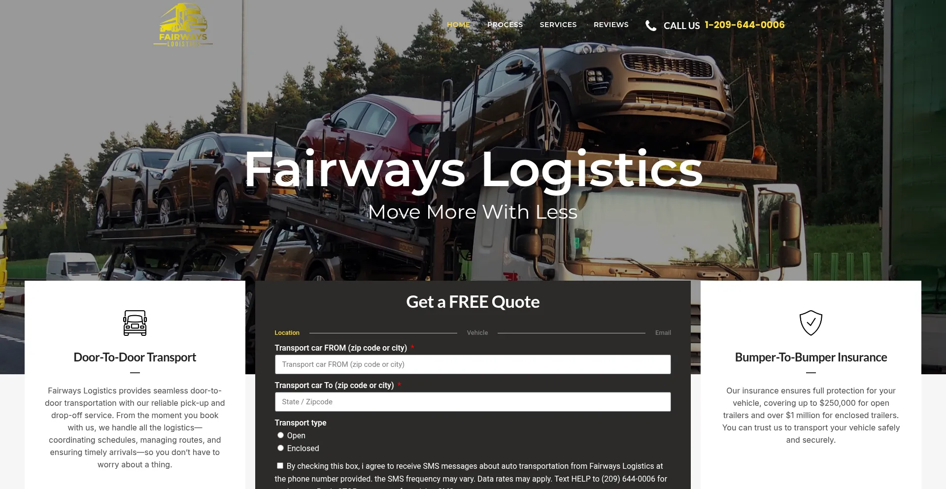 Fairways logistics move more with less. Door-to-door ease with pick-up and drop-off service. Bumper-to-bumper coverage for your vehicle during transport.