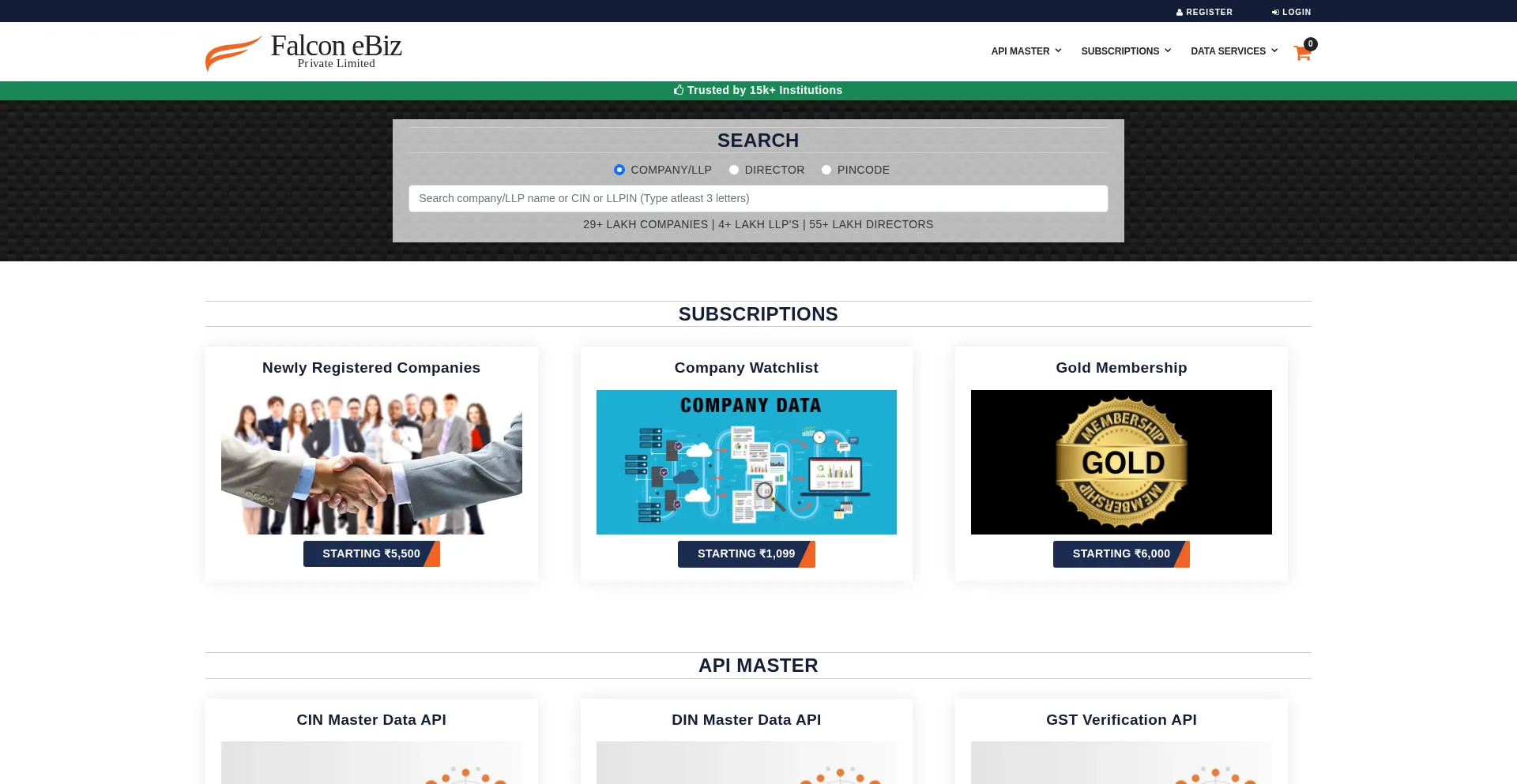 Some of our services include Pincode Wise Companies, Newly Registered Companies, Company Watchlist, Gold Membership, CIN Master Data API, DIN Master Data API, Company Search API...