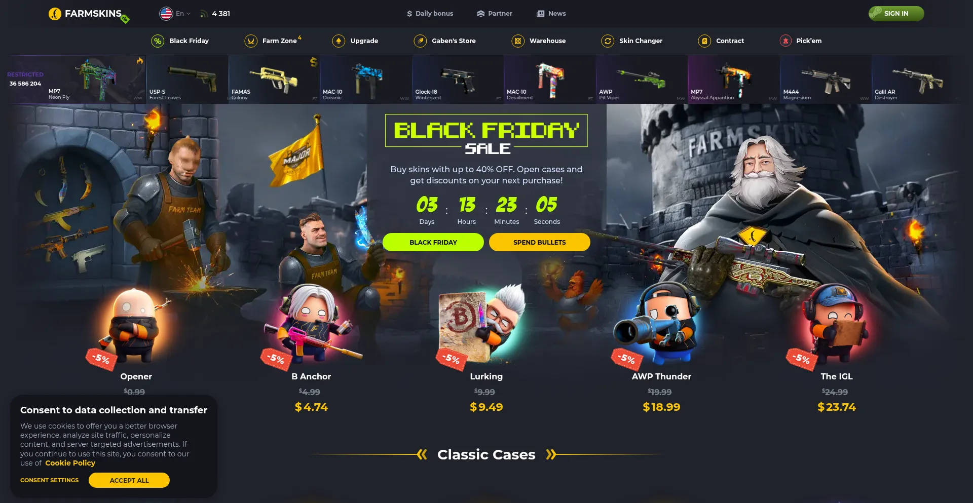 Open CS2 (CS:GO) Cases & Get Skins | Farmskins — Drop is better than from Gaben