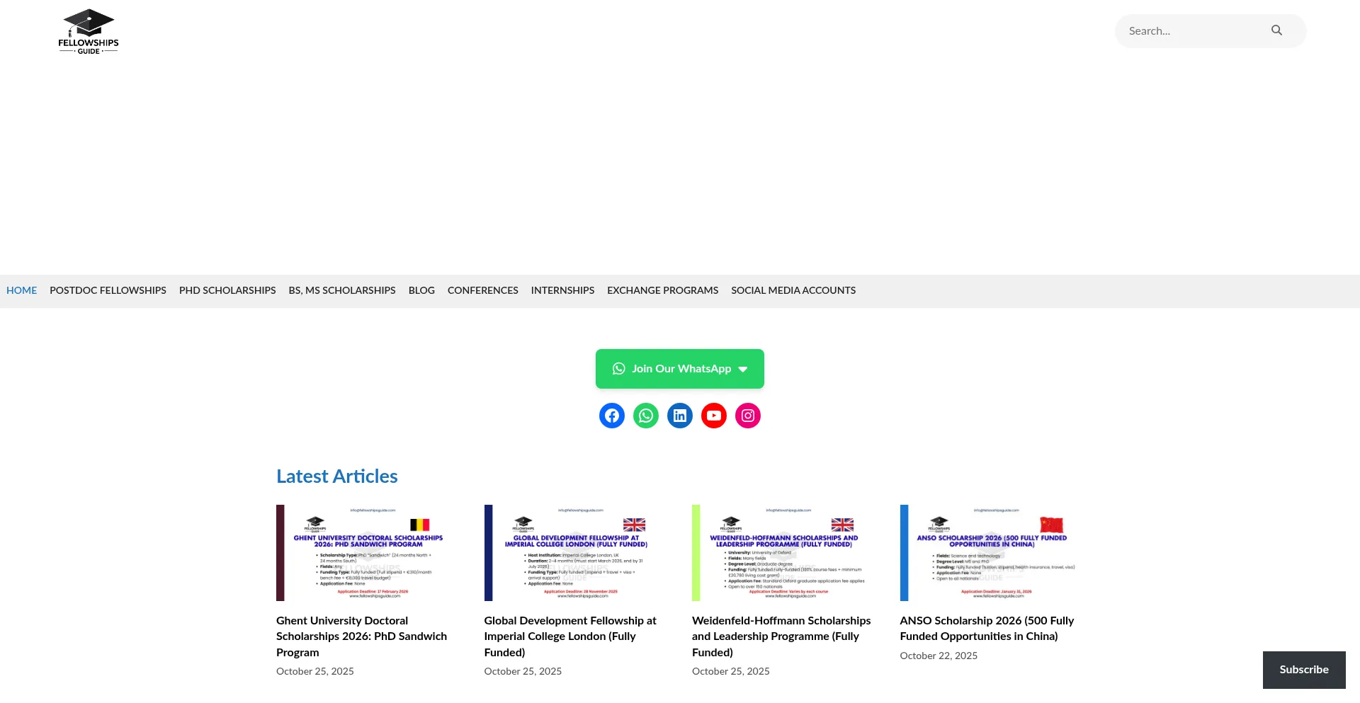 Latest Articles Load More PhD Scholarships Load More PostDoc Fellowships Load More BS, MS Scholarships Load More Paid Internships Load More Exchange Programs