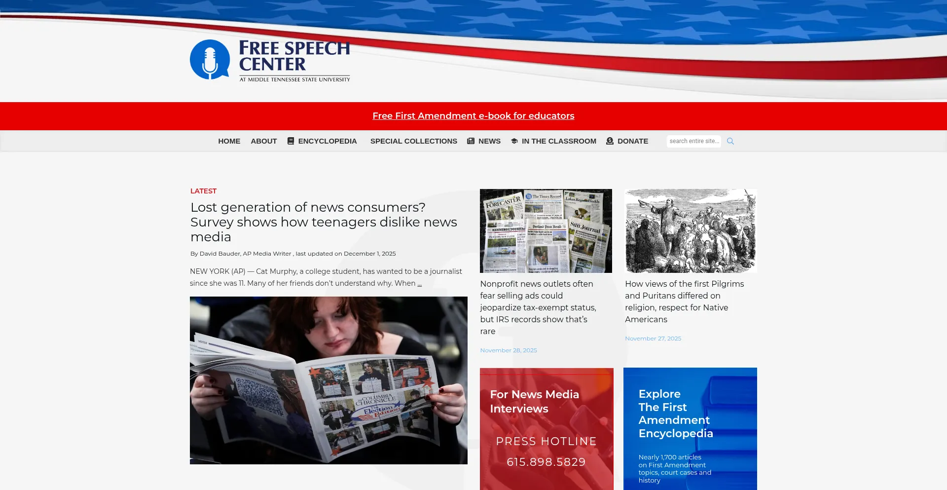 The Free Speech Center is the most-visited resource on the First Amendment freedoms, with free daily news reports and comprehensive First Amendment Encyclopedia.