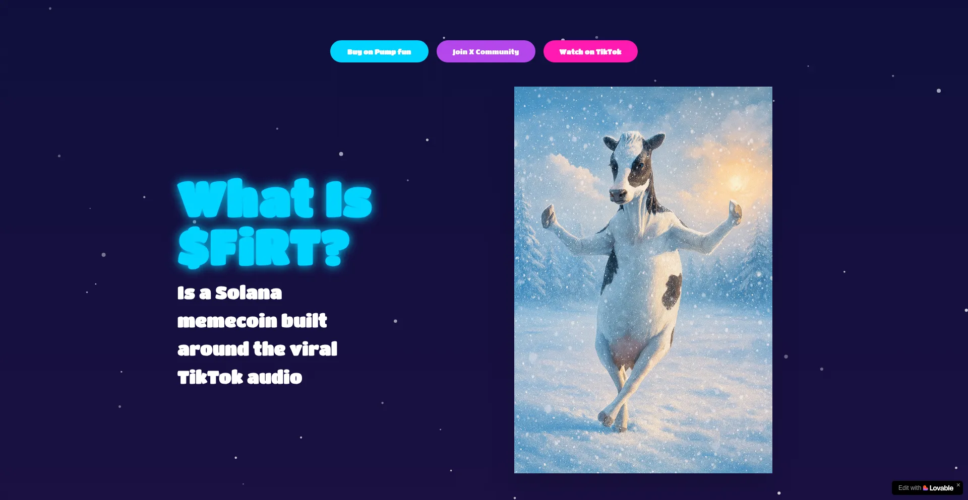 x.com www.tiktok.com firstcoin.lovable.app lovable.dev fonts.googleapis.com pump.fun fonts.gstatic.com