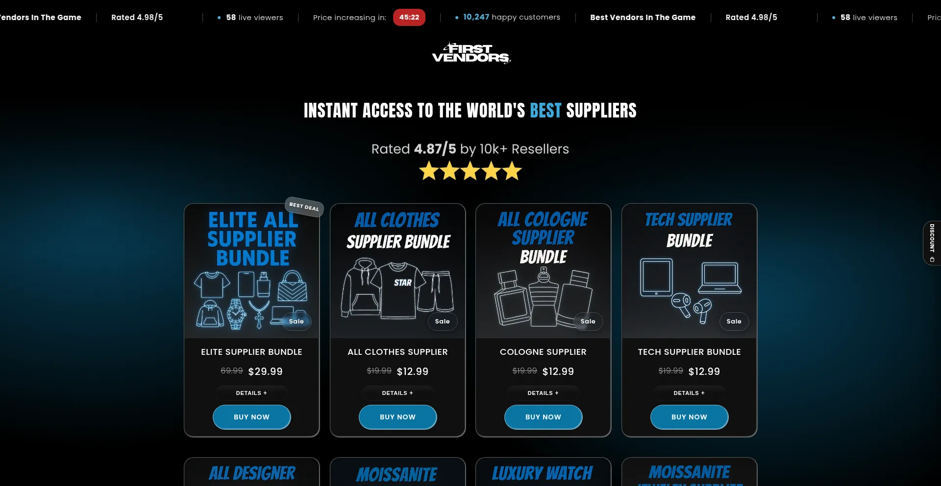 O site aproveita nomes de produtos populares e marcas para atrair tráfego e gerar interesse do usuário. Esses produtos podem ser oferecidos através de campanhas promocionais ou estratégias de desconto projetadas para aumentar o engajamento de visitantes e taxas de conversão para firstvendors.net.