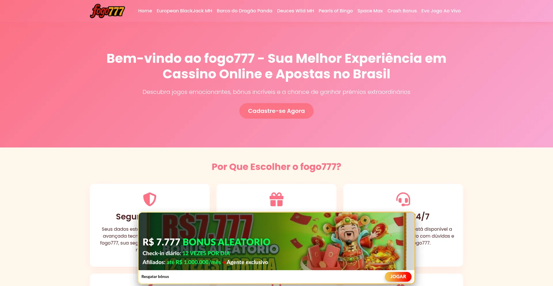 fogo777 é a melhor plataforma de cassino online do Brasil. Jogos ao vivo, apostas esportivas, blackjack, bingo e muito mais. Cadastre-se agora!