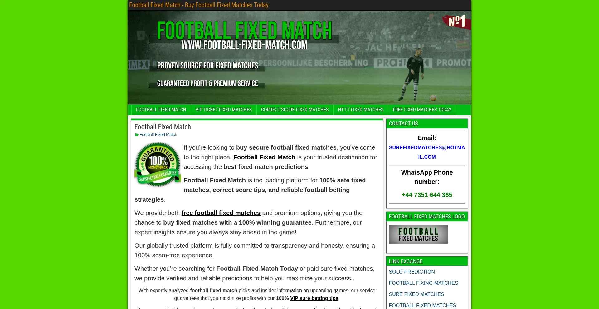 Your source for 100% sure football fixed matches. Get verified tips, guaranteed correct score predictions, and free daily match info.