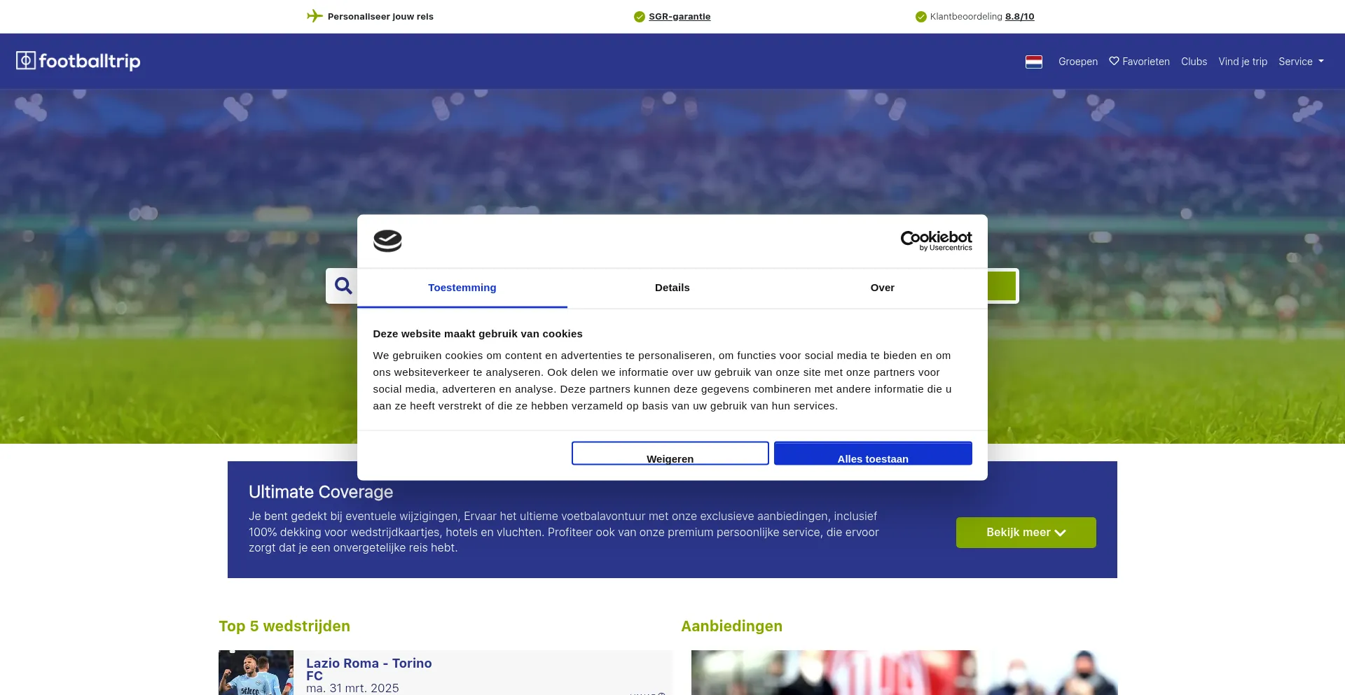 O site implementa mecanismos de consentimento de cookies em conformidade com regulamentações de privacidade como GDPR ou CCPA. Isso demonstra que footballtrip.be adere a padrões de proteção de dados e fornece aos usuários controle sobre práticas de coleta de dados pessoais.