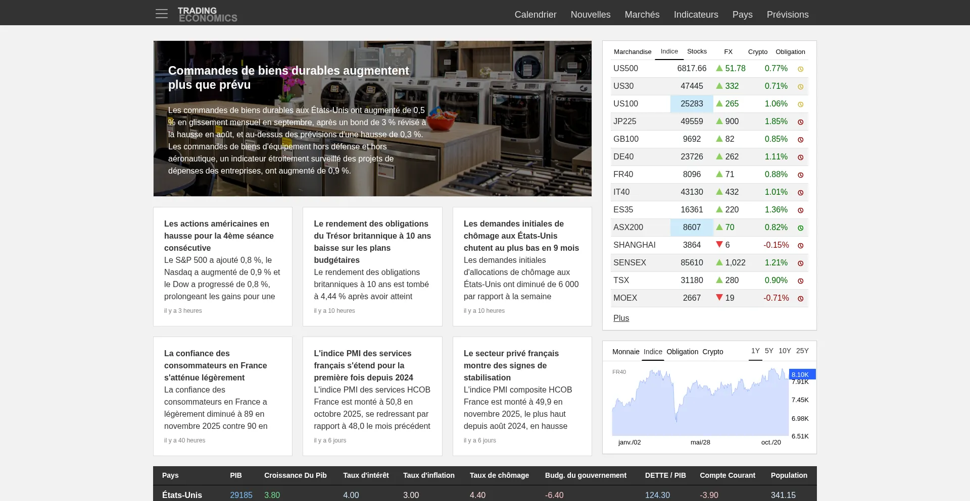 INDICATEURS ÉCONOMIQUES | FR | TRADINGECONOMICS.COM