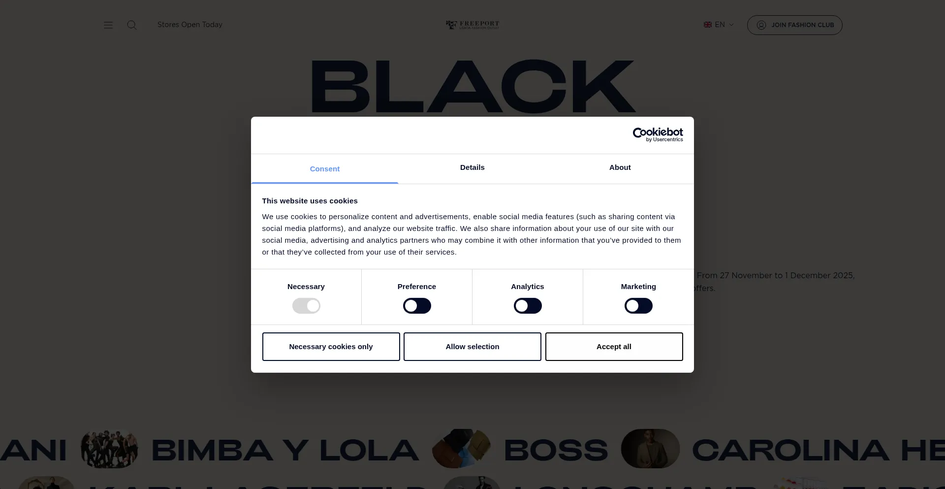 O site implementa mecanismos de consentimento de cookies em conformidade com regulamentações de privacidade como GDPR ou CCPA. Isso demonstra que freeportfashionoutlet.pt adere a padrões de proteção de dados e fornece aos usuários controle sobre práticas de coleta de dados pessoais.