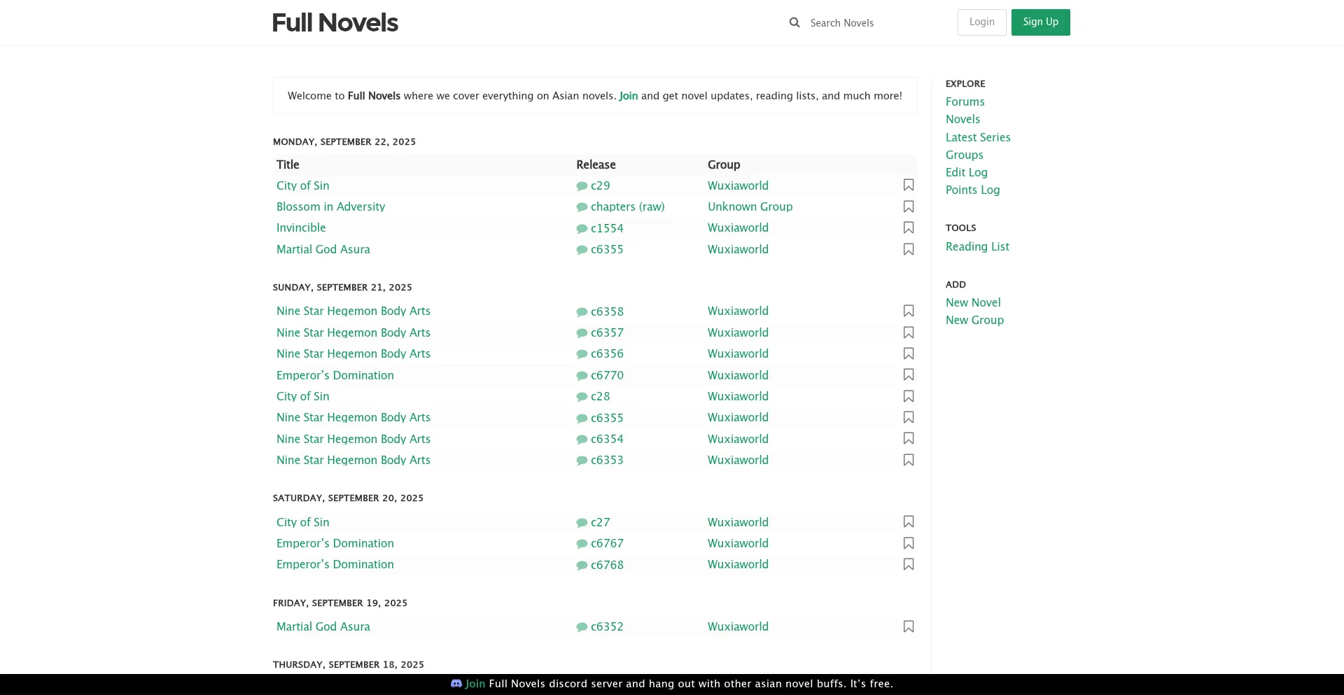 Read and get updates on the latest English translations of Asian novels, covering all Light Novels and Web Novels. Driven by the community!