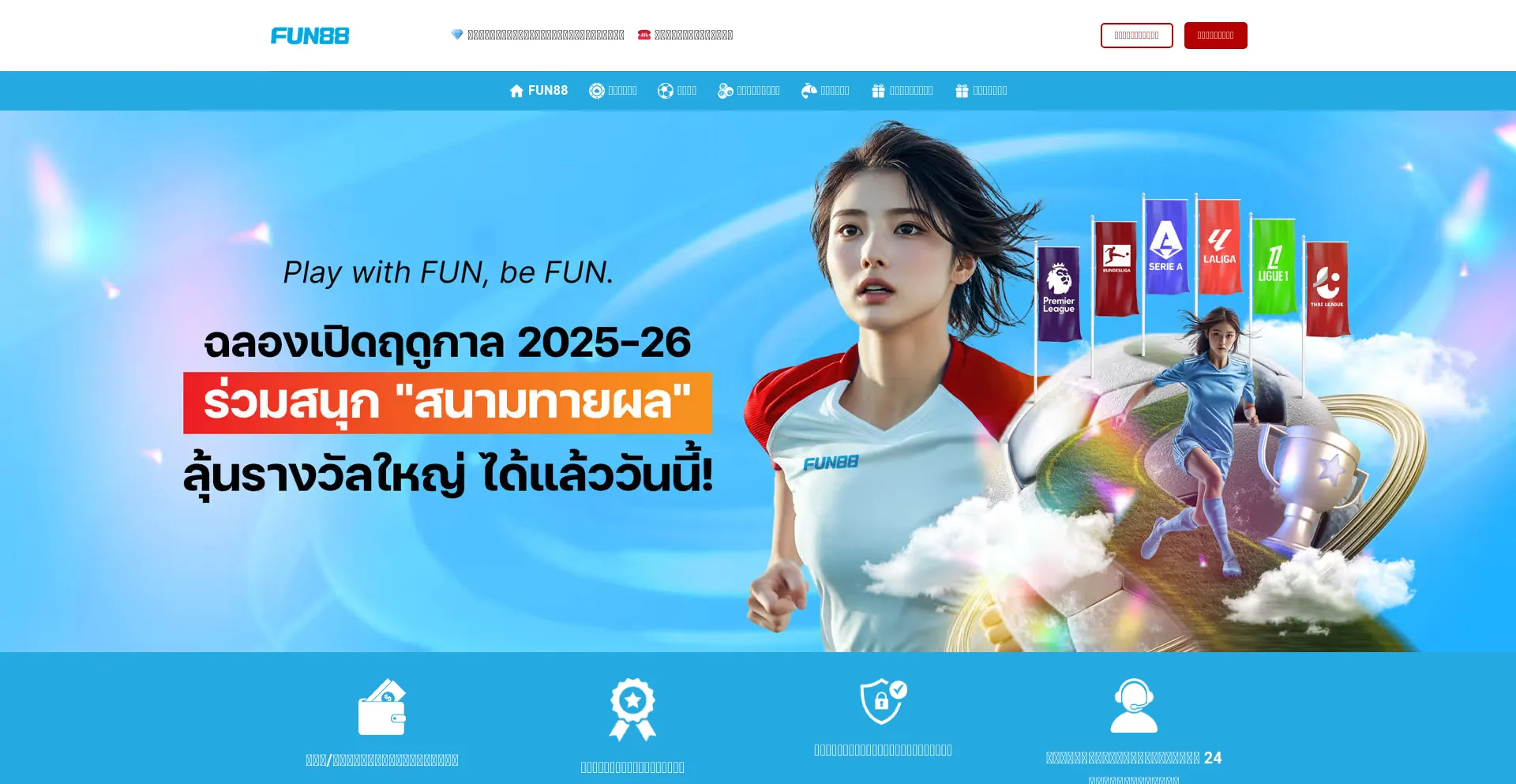 Fun88 - หน้าแรกอย่างเป็นทางการของเจ้ามือรับพนันอันดับ 1 ที่เชื่อถือได้ของเอเชีย