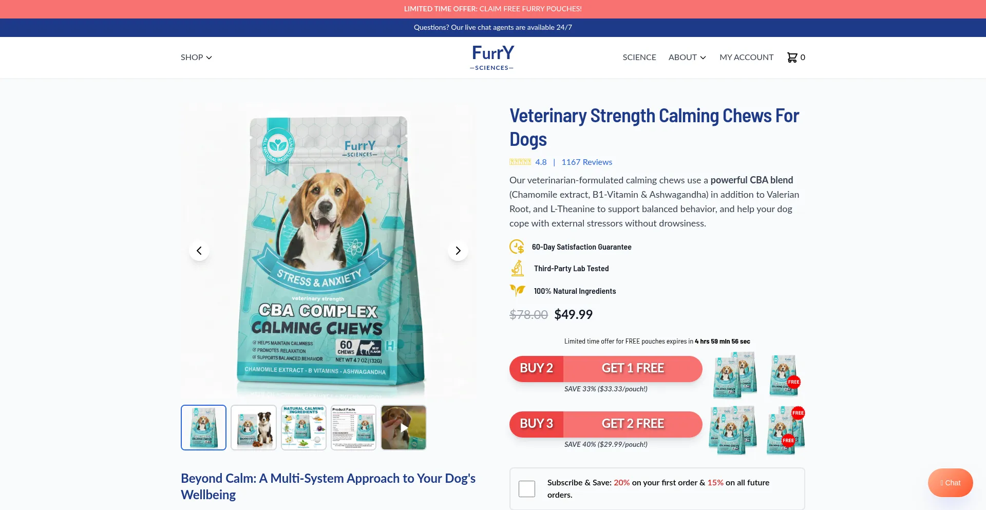 Veterinary Strength CBA Calming Chews - Furry Sciences