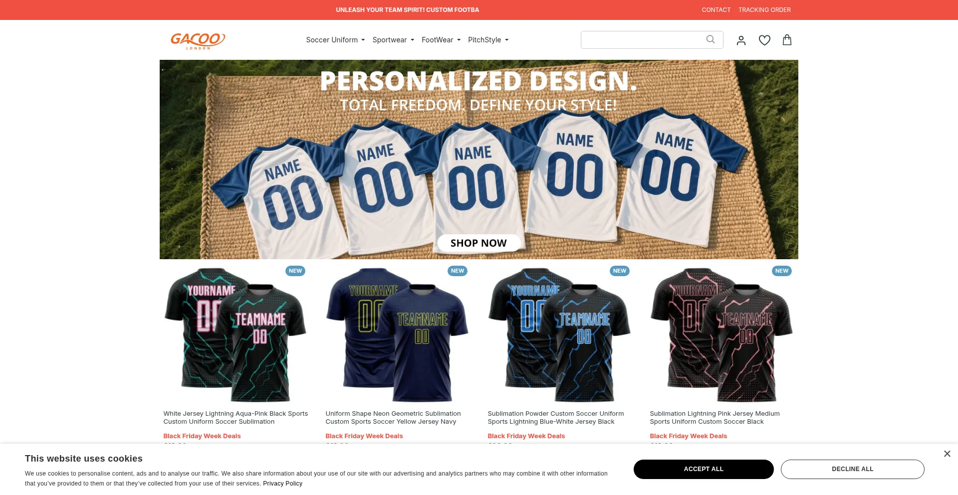 Order custom football jerseys online! Get personalized soccer kits for teams, clubs, or fans. Choose from 100+ designs, free shipping on bulk orders, and 24/7 support. Start you...