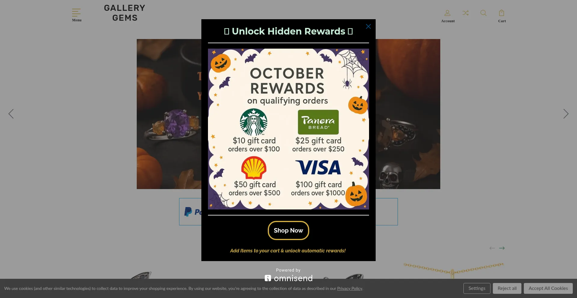 O site implementa mecanismos de consentimento de cookies em conformidade com regulamentações de privacidade como GDPR ou CCPA. Isso demonstra que gallerygemsshop.com adere a padrões de proteção de dados e fornece aos usuários controle sobre práticas de coleta de dados pessoais.