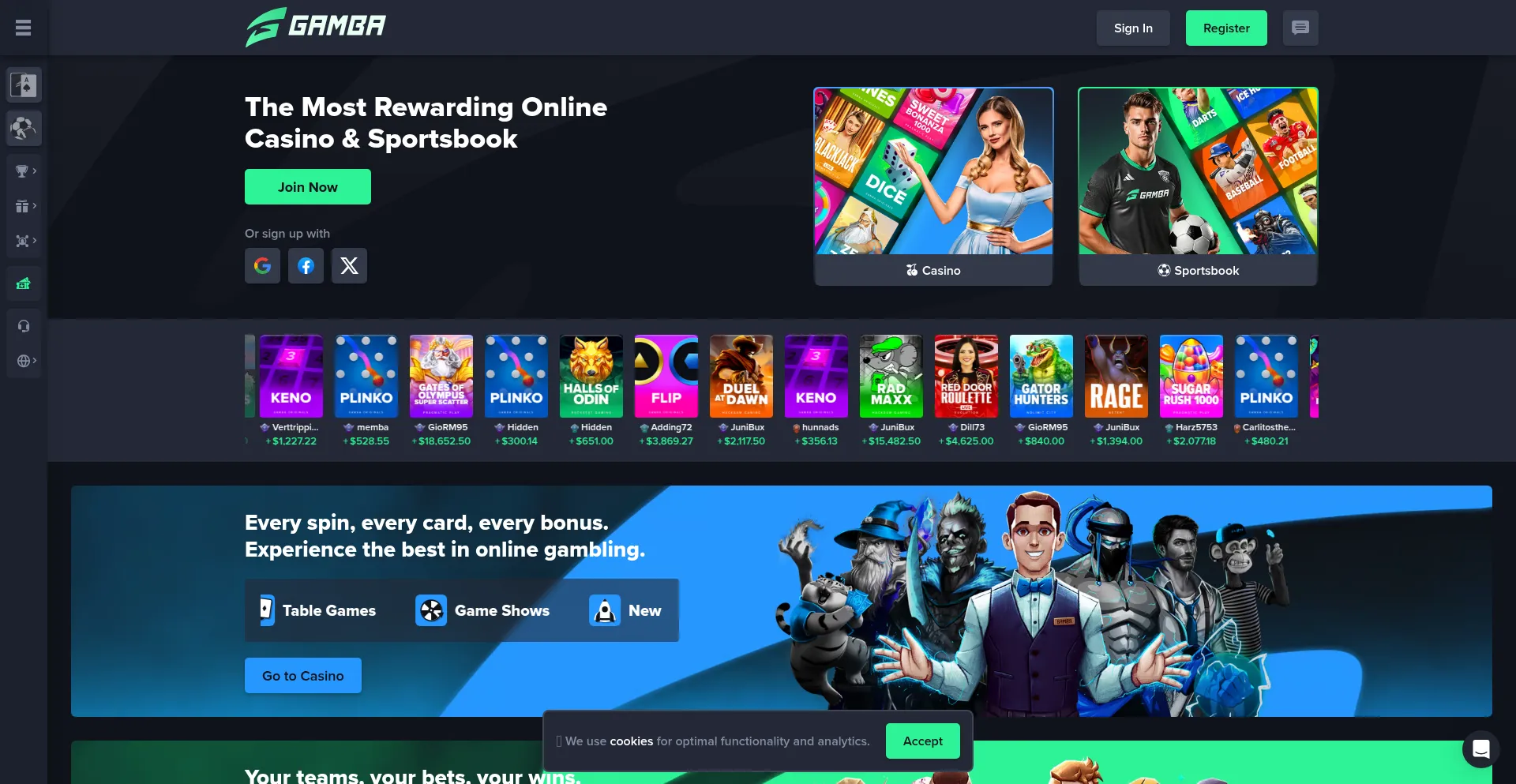 Experience elite crypto casino & sports betting at Gamba. Bet in BTC, ETH, SOL & more. VIP features include rakeback, weekly, rejuice, monthly & more bonuses!