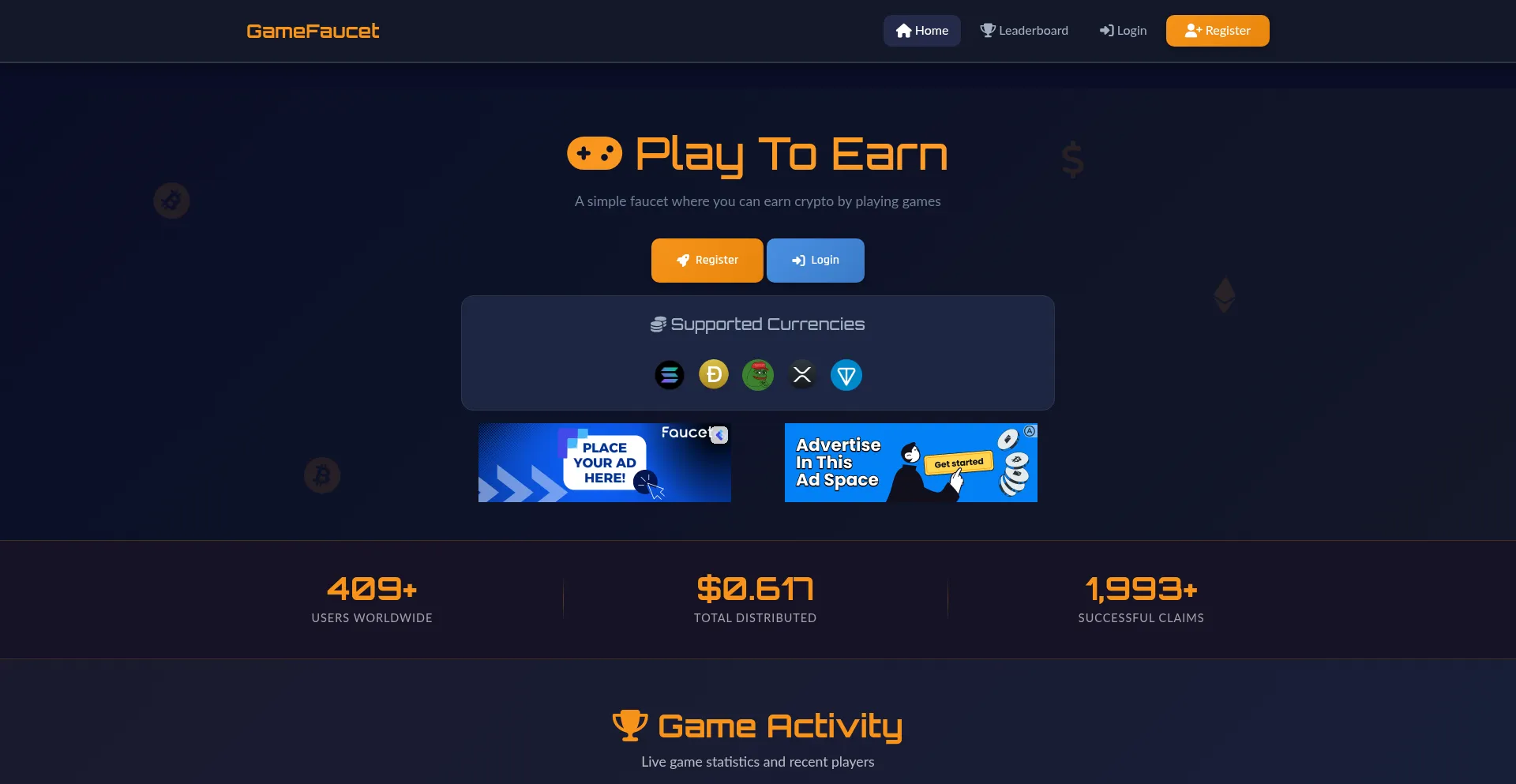 Home | GameFaucet - A simple faucet where you can earn crypto by playing games