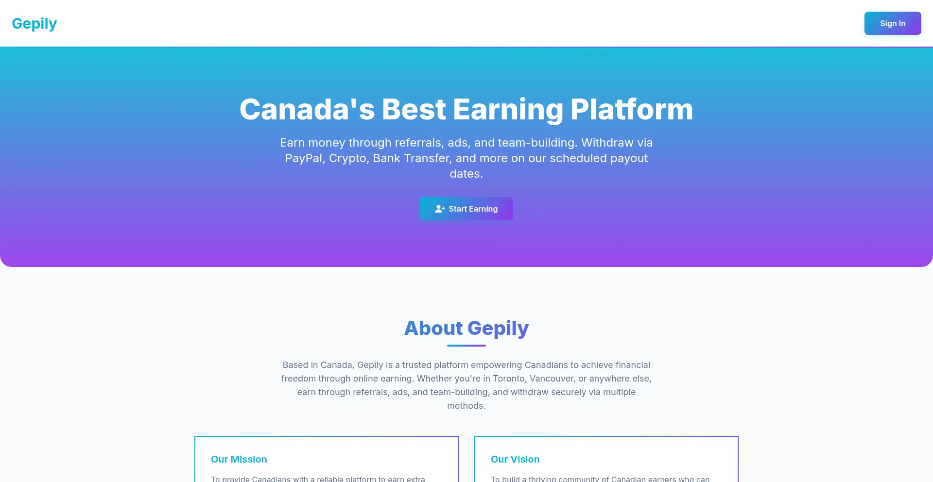 Welcome to Gepily.com — Canada's leading ads earning platform. Earn real money by viewing and clicking ads daily. Fast payouts, secure dashboard, and easy-to-use interface. St...