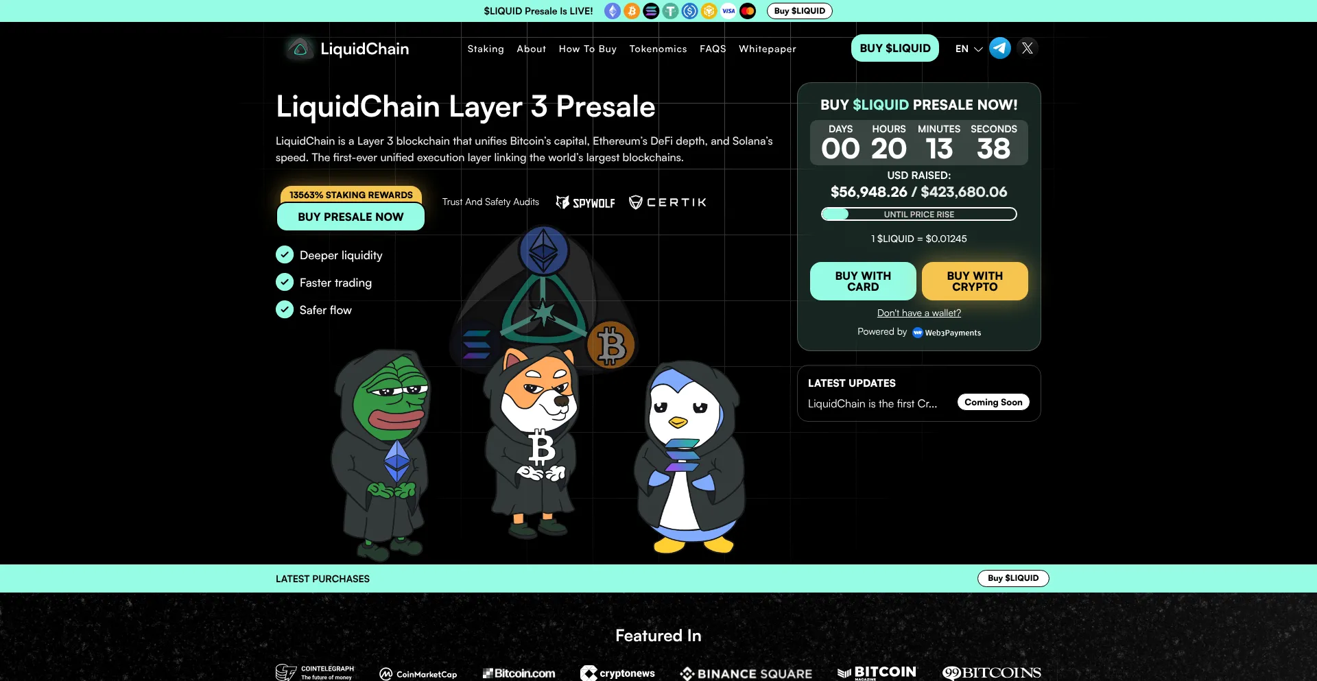 LiquidChain is a Layer 3 blockchain that unifies Bitcoin’s capital, Ethereum’s DeFi depth and Solana’s speed. Join the $LIQUID presale now for deeper liquidity, faster tra...