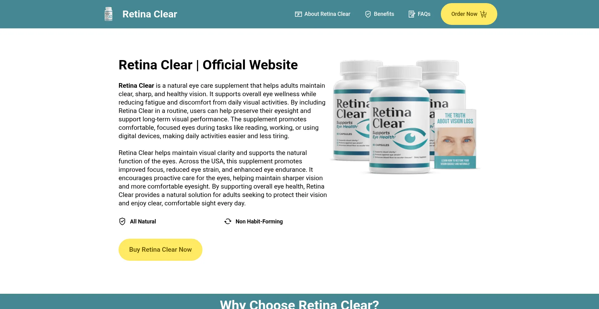 Retina Clear is a natural supplement that promotes eye health, eases eye strain, enhances visual clarity, and supports daily vision care naturally.