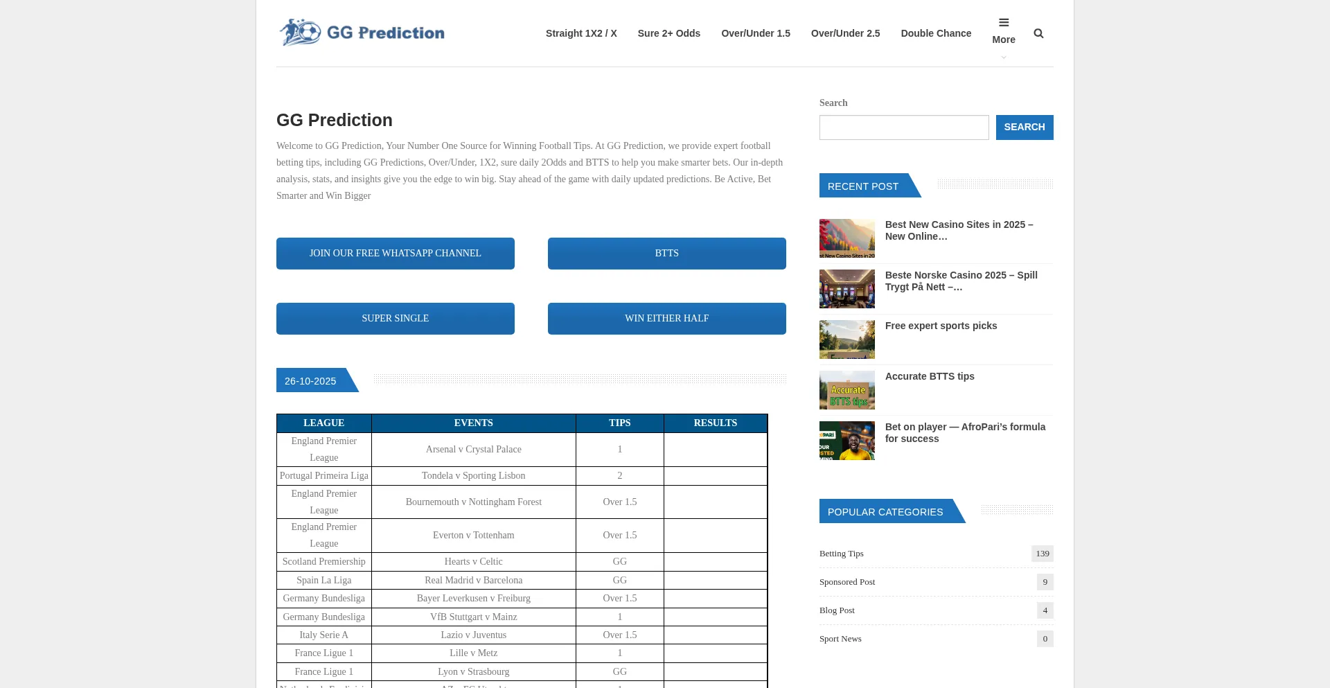 Welcome to GG Prediction, Your Number One Source for Winning Football Tips. At GG Prediction, we provide expert football betting tips, including GG