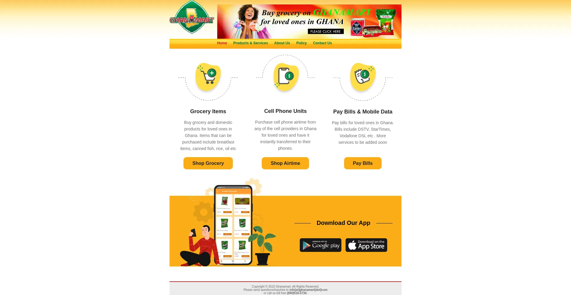 Purchase services, products, cell phone units for family in Ghana