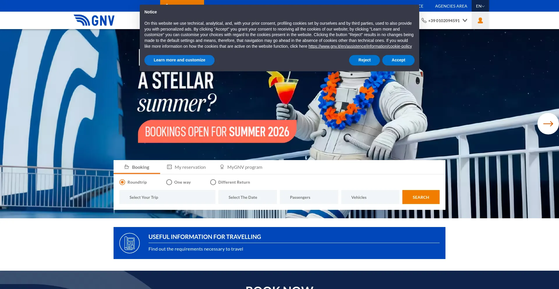 Book online your ferry and sail to Sicily, Sardinia, Morocco, Tunisia, Spain, Albania and Algeria with GNV - Grandi Navi Veloci. Discover more on the official website.