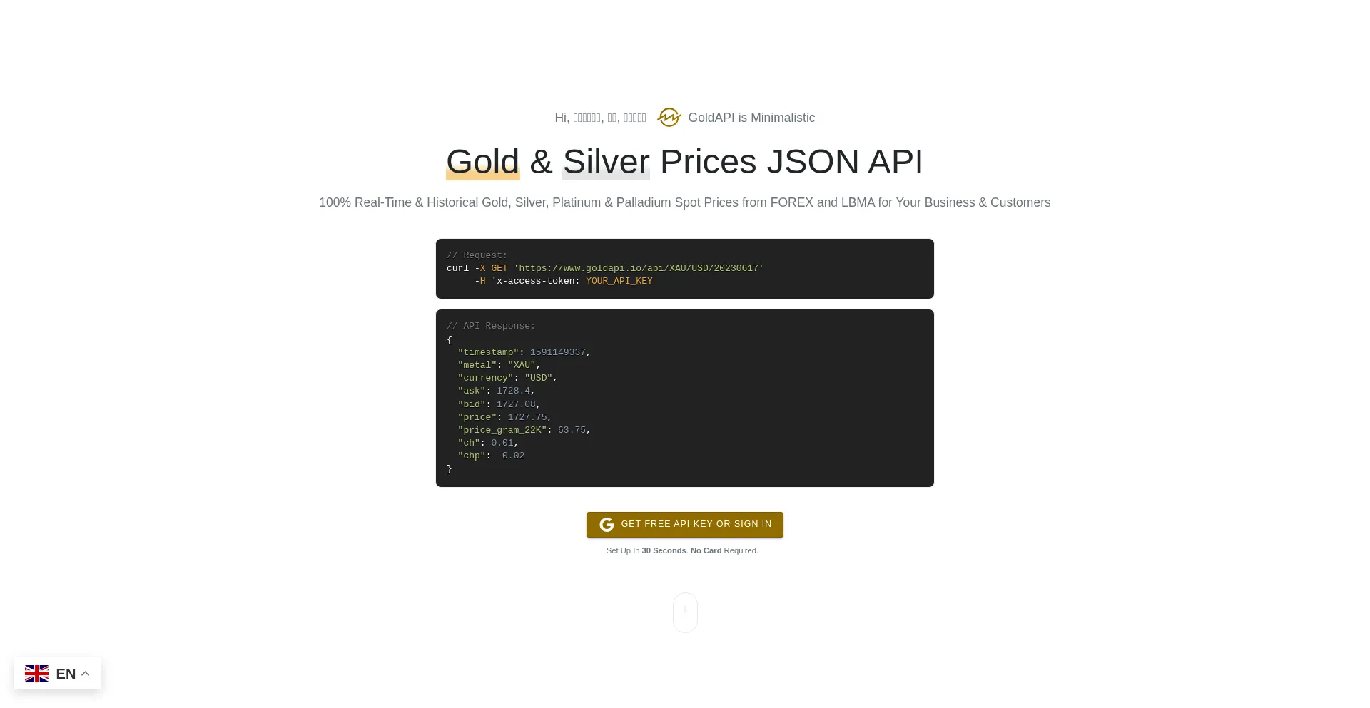 Free Real-Time Gold and Silver Spot Prices REST JSON API | GoldAPI.io