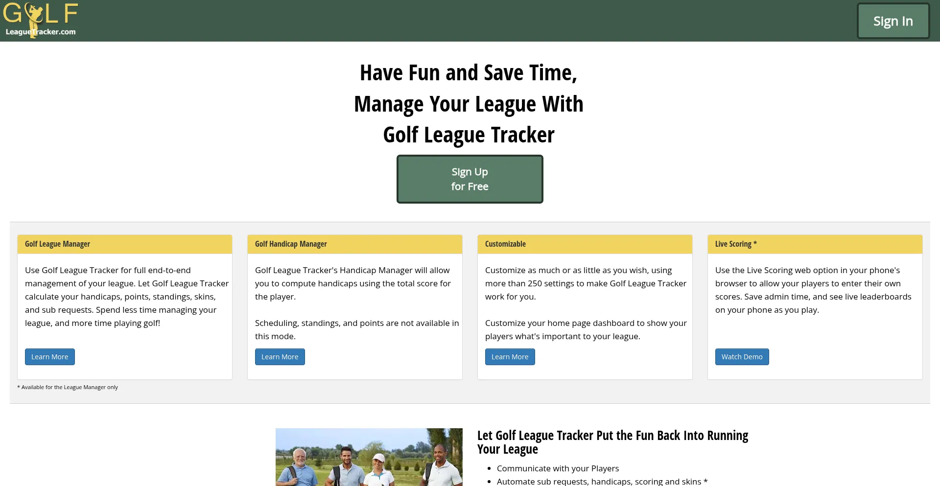 Manage Your Golf League Online. Track scores, handicaps, stats, standings and more. Free 4 round trial