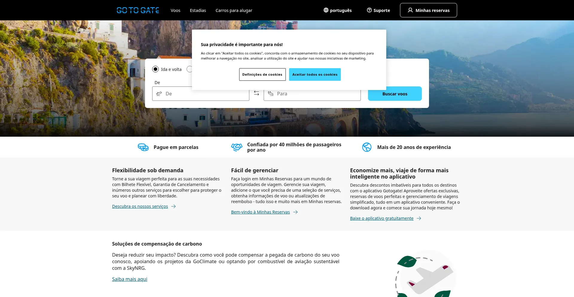 Página inicial Gotogate: Ofertas de voos para viajar com inteligência e desfrutar mais