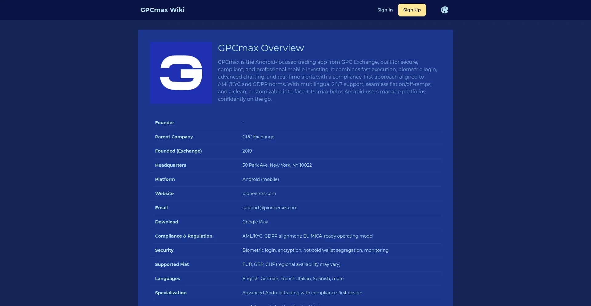 GPCmax Wiki: Android trading app by GPC Exchange. Explore features, security, compliance, fiat support, and FAQs in one concise reference for mobile-first digital asset investors.