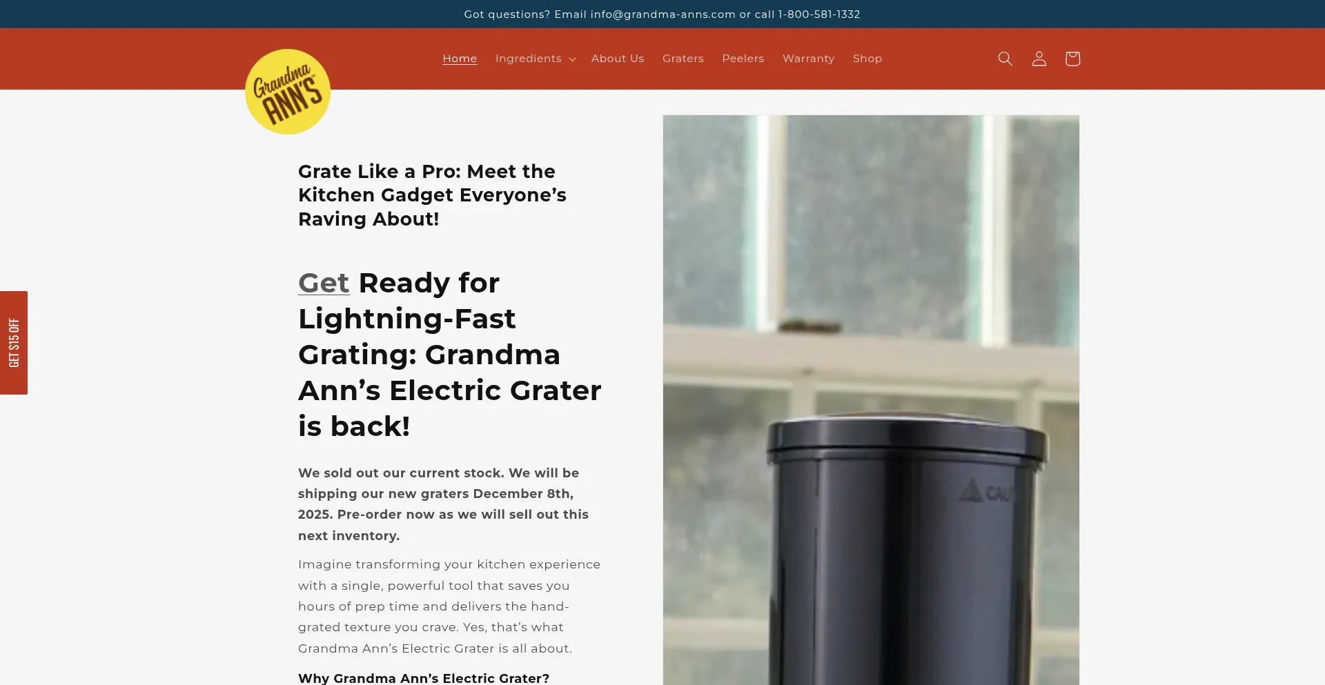 Grandma Ann's Electric Grater grated potatoes, shredded coconut, fast