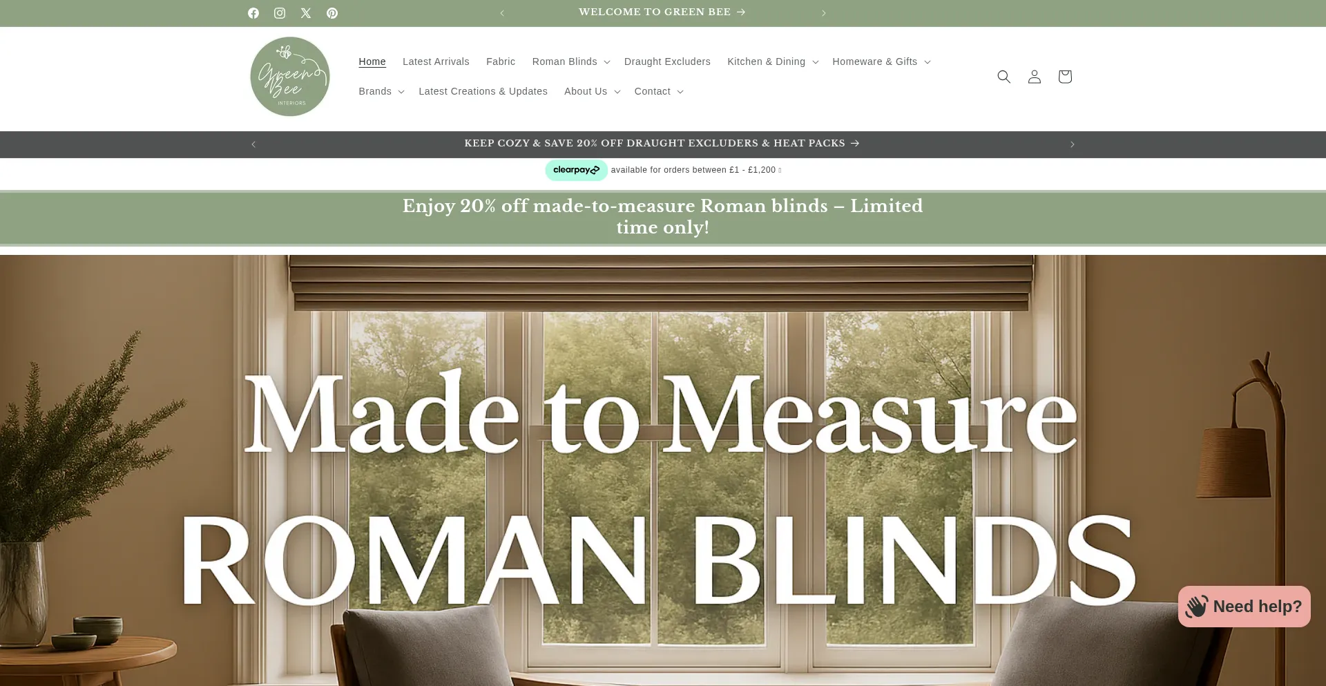 Green Bee Interiors | Handmade Home Décor & Custom Blinds - UK