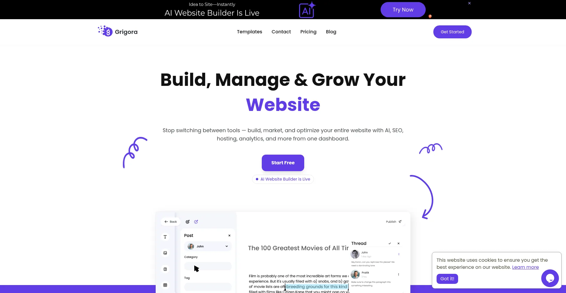 Start a Blog, Build a Website, Best WordPress Alternative | Grigora