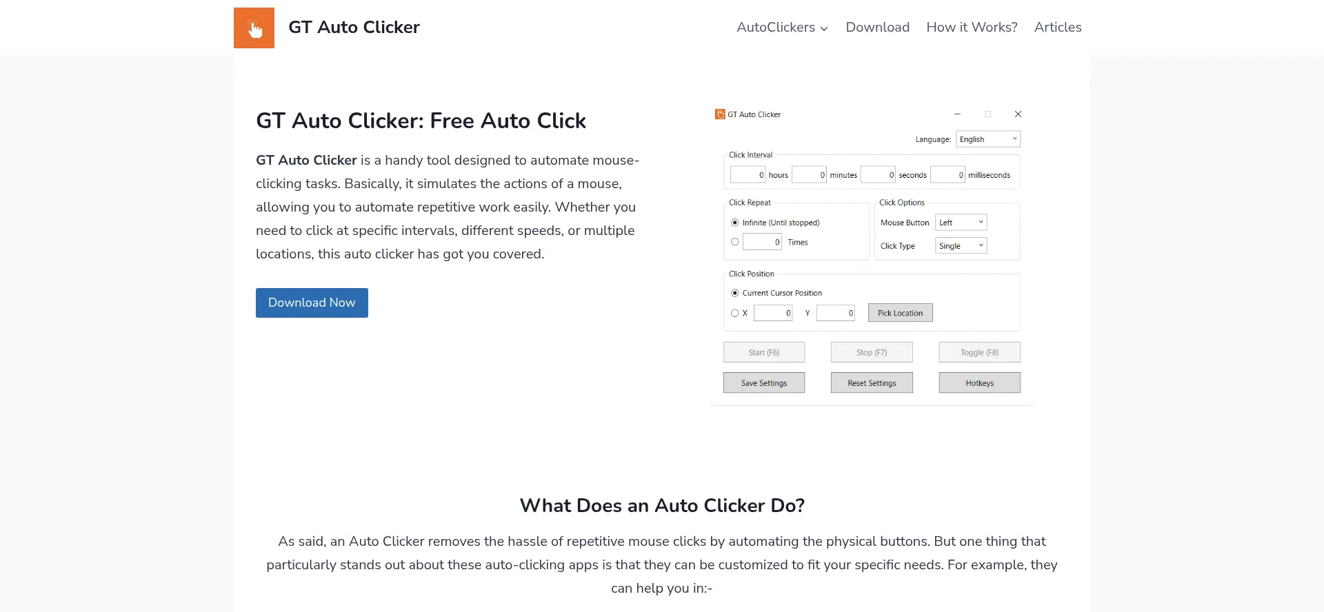 GT Auto Clicker is a handy tool designed to automate mouse-clicking tasks. It also simulates the clicks for automating daily repetitive work.